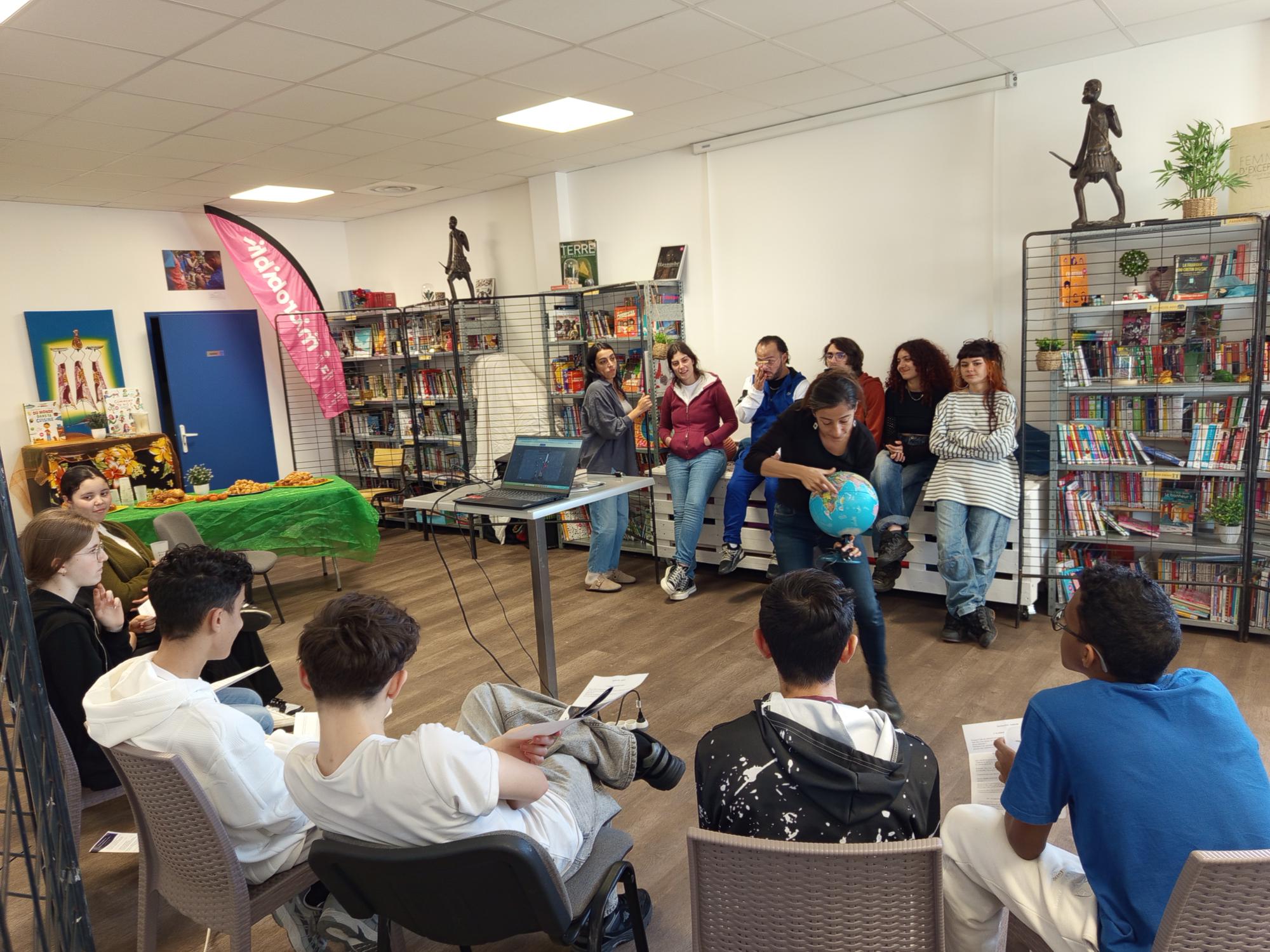 L'après-midi, ils ont poursuivi leur travail annuel avec la radio associative Take It Radio en se rendant à la Plateforme de Solidarité Internationale de Perpignan. Après avoir découvert les locaux et la philosophie de cette association, des rencontres avec des jeunes partis en action de solidarité à Madagascar ont été organisées. Accompagnés de Solane et Lou de Take It Radio, les élèves ont appris à mener de réelles interviews qui constitueront une part importante de leur travail de fin d'année.
