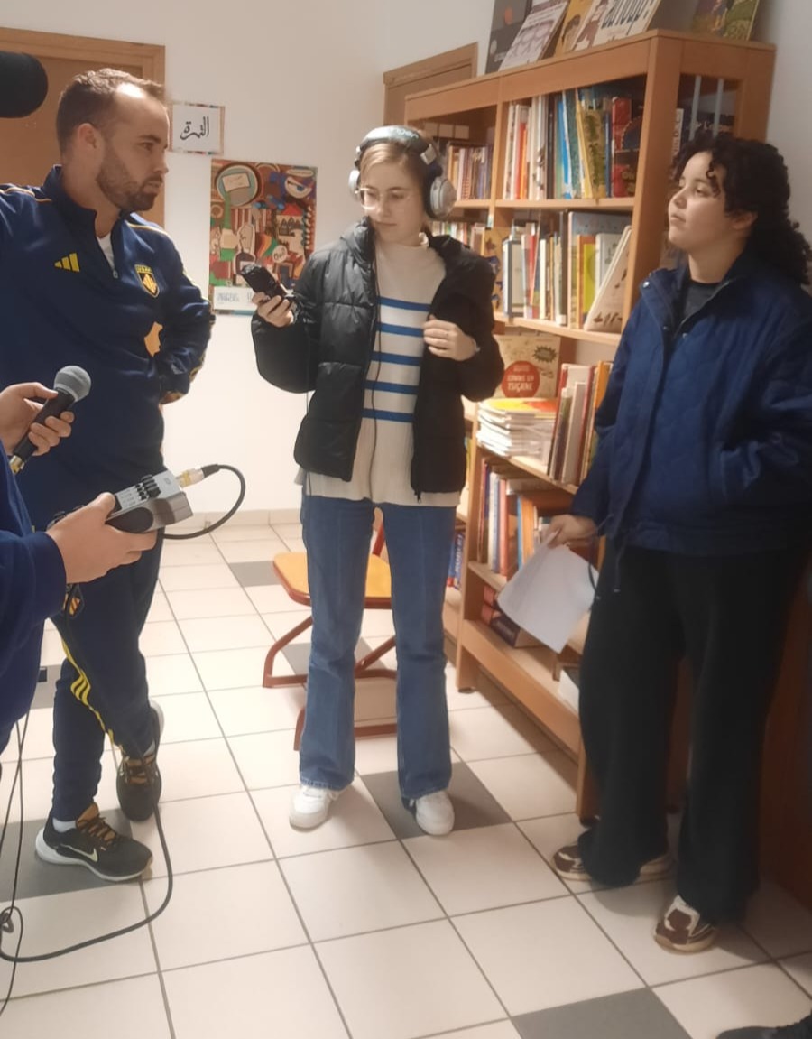 Accompagnés de Solal et Lyess (de Take It), ainsi que des deux étudiantes de l'UPVD participant à l'atelier actualité, ils ont pu interroger d'autres élèves, des enseignants, des agents du collège, des AED et l'une des CPE. Les interviewés ont apprécié leur aisance à l'oral.